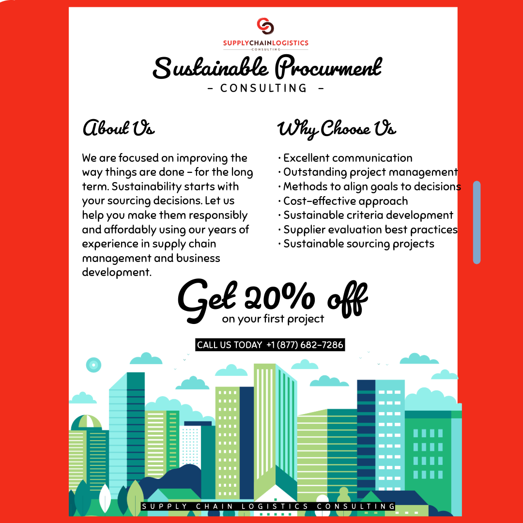 Recieve experienced support for your company’s strategic transition to sustainable procurement and supplier relationship management. * S&Co., Supply Chain Logistics Consulting Inc.